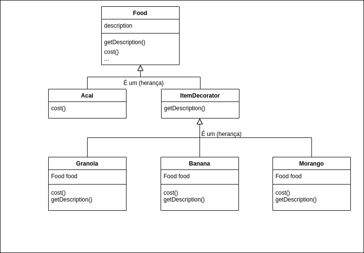 Açaí decorado com morango, banana e granola continua sendo uma comida (Food). Logo, podemos fazer com ela tudo o que podemos fazer com o Acai, inclusive chamar seu método cost().
