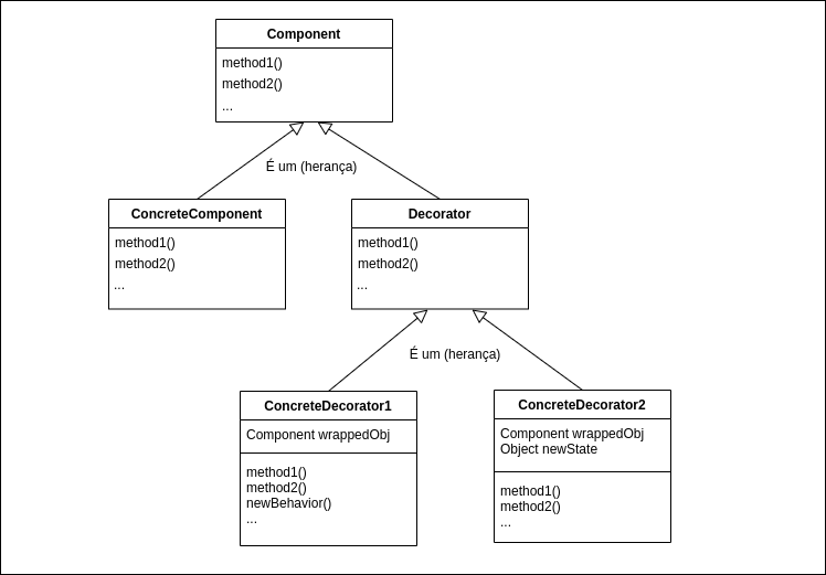 O diagrama de classe do padrão Decorator é mostrado abaixo:
